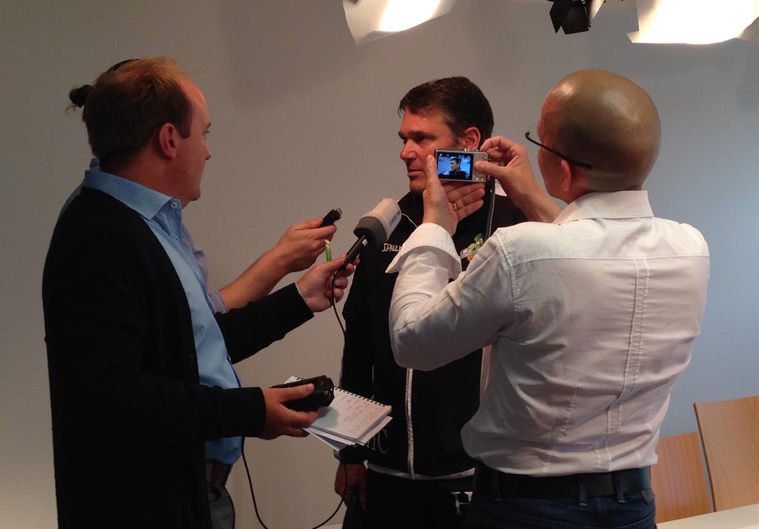 Wenn Marco van den Berg über Basketball spricht, leuchten seine Augen. Er benutzt Worte wie "wunderschön" und "wunderbar" und es ist nicht der mangelnden Sprachkenntnisse geschuldet. Der Niederländer spricht hervorragend deutsch und meint was er sagt. Zumindest kauft man es ihm ab. Er ist kommunikativ und offen, auch gegenüber der Presse (Bild). Man könnte fast schon sagen, dass er maximal transparent ist. Zumindest redet er nicht um den heißen Brei herum - das, was er sagen will, sagt er, das was er nicht sagen will, sagt er nicht. Deshalb hat er auch mit unseren Assoziationsfragen kein Problem und antwortet schnell: